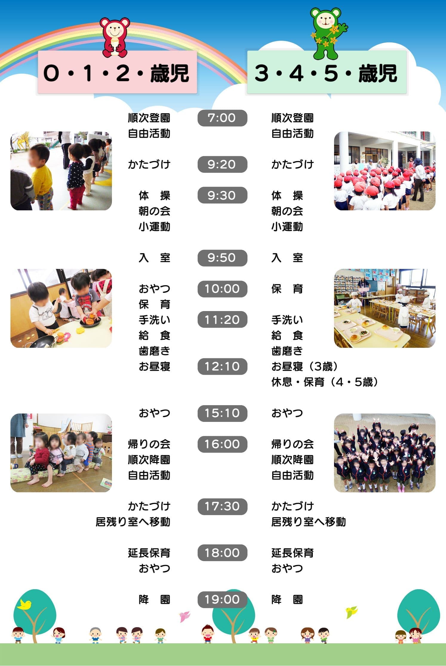規則正しいリズムを作って生活を安定させ子どもたちの発達を促します。