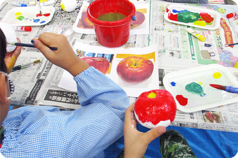 講師を招き、絵画・造形・実験的創作を楽しく学んで、創り上げる力、自分らしい表現を楽しみます。(3・4・5歳児希望者のみ)