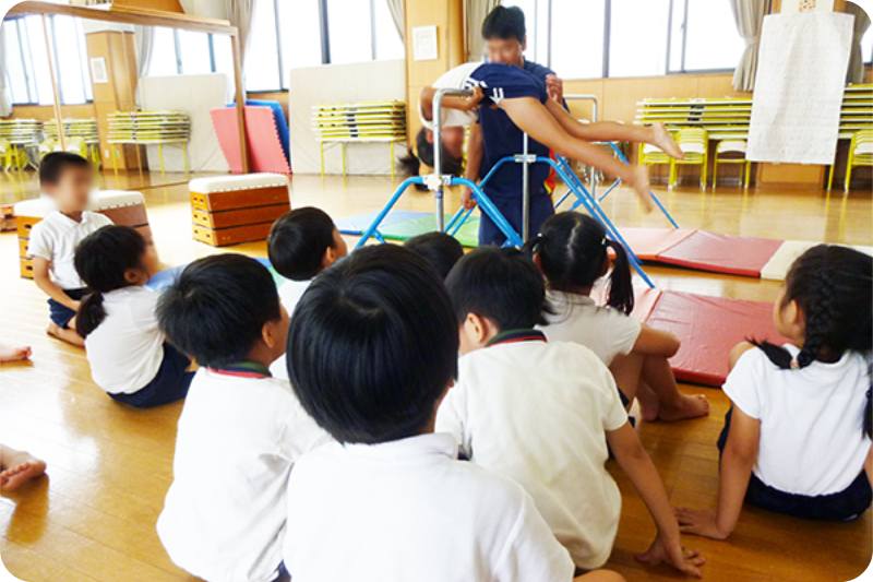 講師を招き、跳び箱の跳び方やなわとびの跳び方など、様々な運動を学んでいくことを目的とし取り組んでいます。(4・5歳児)