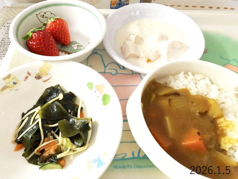 給食 2026-01-05の給食 Posted on 2026-01-05 ■10時のおやつ いちご ■おひるごはん 麦ごはん カレーライス わかめのごま酢和え ■3時のおやつ フルーツヨーグルト クリックして X で共有 (新しいウィンドウで開きます) X Facebook で共有するにはクリックしてください (新しいウィンドウで開きます) Facebook クリックして Tumblr で共有 (新しいウィンドウで開きます) Tumblr クリックして Pinterest で共有 (新しいウィンドウで開きます) Pinterest