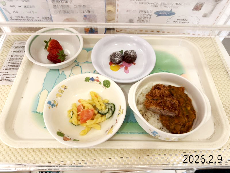 給食 2026-02-09の給食 Posted on 2026-02-09 ■10時のおやつ いちご ■おひるごはん 麦ごはん キーマカツカレー マカロニサラダ ■3時のおやつ ココアスノーボールクッキー X で共有 (新しいウィンドウで開きます) X Facebook で共有 (新しいウィンドウで開きます) Facebook Tumblr で共有 (新しいウィンドウで開きます) Tumblr Pinterest で共有 (新しいウィンドウで開きます) Pinterest