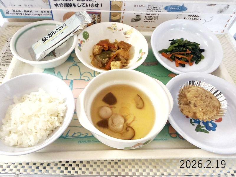 給食 2026-02-19の給食 Posted on 2026-02-19 ■10時のおやつ ウエハース ■おひるごはん 麦ごはん 清汁 厚揚げとキャベツの回鍋肉 ほうれん草のごま和え ■3時のおやつ 小倉蒸しパン X で共有 (新しいウィンドウで開きます) X Facebook で共有 (新しいウィンドウで開きます) Facebook Tumblr で共有 (新しいウィンドウで開きます) Tumblr Pinterest で共有 (新しいウィンドウで開きます) Pinterest