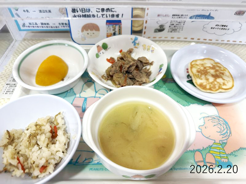 給食 2026-02-20の給食 Posted on 2026-02-20 ■10時のおやつ もも缶 ■おひるごはん しらすごはん 豚肉の生姜焼き シャッキリみそ汁 ■3時のおやつ スイートコーンのパンケーキ X で共有 (新しいウィンドウで開きます) X Facebook で共有 (新しいウィンドウで開きます) Facebook Tumblr で共有 (新しいウィンドウで開きます) Tumblr Pinterest で共有 (新しいウィンドウで開きます) Pinterest