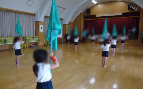 マーチングの練習と研修 今日の保育士体験ママ