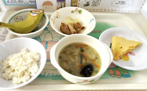 ■10時のおやつ バナナ ■おひるごはん 麦ごはん 鶏肉のさっぱり煮 切り干し大根のみそ汁 ■3時のおやつ チーズケーキ