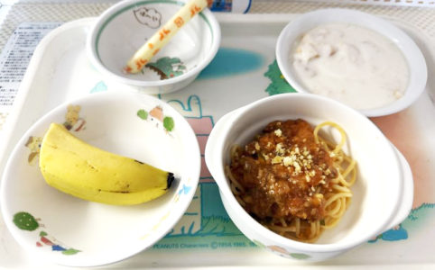 ■10時のおやつ チーズ ■おひるごはん スパゲティミートソース バナナ ■3時のおやつ フルーツヨーグルト