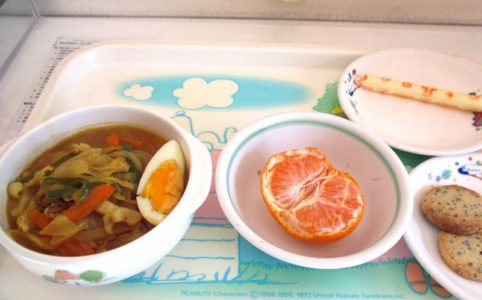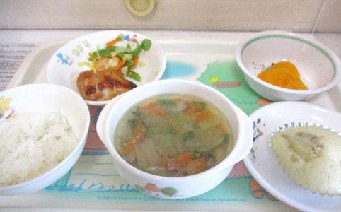 ■10時のおやつ みかん缶 ■おひるごはん 麦ごはん タンドリーチキン ソテー チンゲン菜のスープ ■3時のおやつ 肉まんじゅう