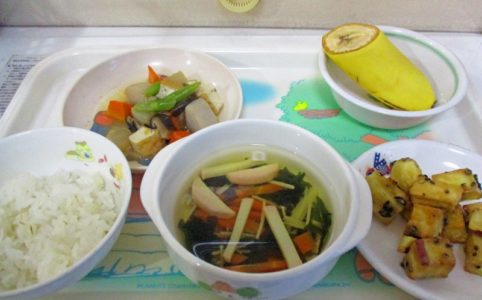 ■10時のおやつ バナナ ■おひるごはん 麦ごはん がめ煮 清汁 ■3時のおやつ 大学いも