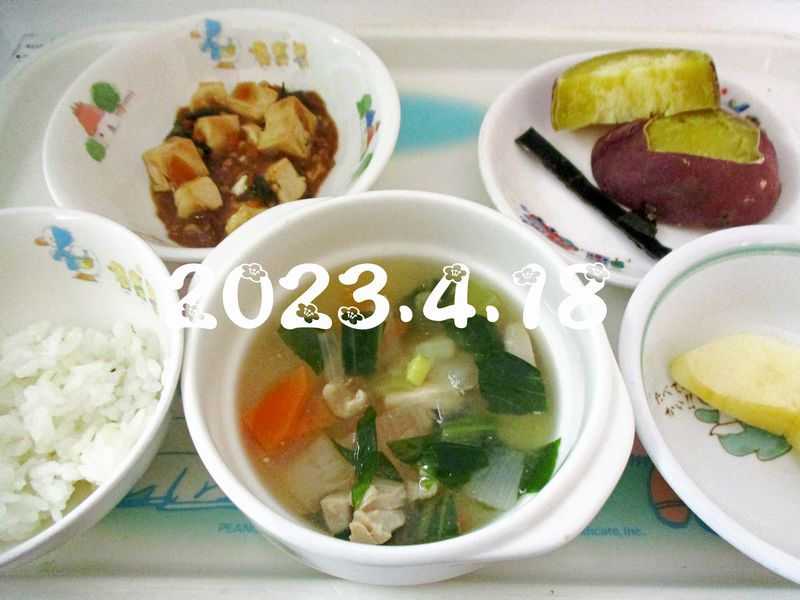 給食 2023-04-18の給食 Posted on 2023-04-18 / 0件のコメント ■10時のおやつ りんご ■おひるごはん 麦ごはん 麻婆豆腐 チンゲン菜のスープ ■3時のおやつ 焼き芋 こんぶ X で共有 (新しいウィンドウで開きます) X Facebook で共有 (新しいウィンドウで開きます) Facebook Tumblr で共有 (新しいウィンドウで開きます) Tumblr Pinterest で共有 (新しいウィンドウで開きます) Pinterest