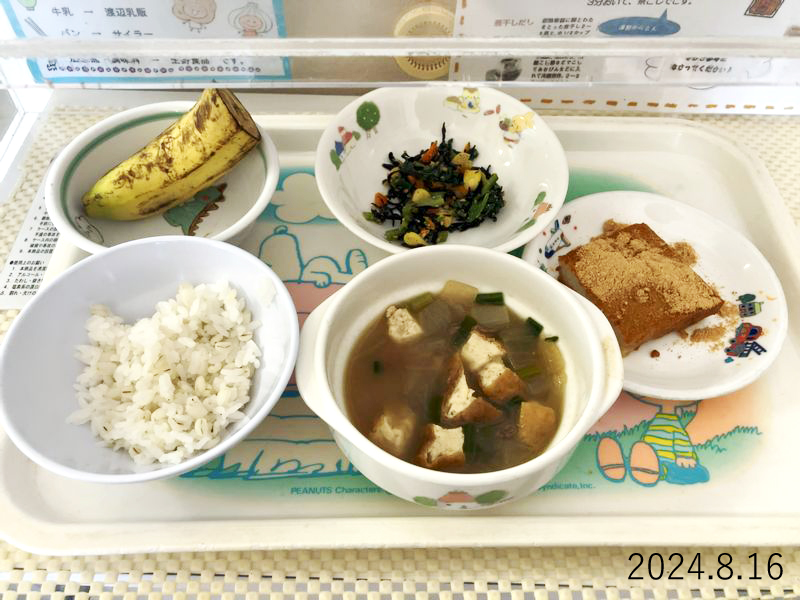給食 2024-08-16の給食 Posted on 2024-08-16 ■10時のおやつ バナナ ■おひるごはん 麦ごはん 肉豆腐 小松菜とひじきの和え物 ■3時のおやつ 黒糖豆乳ゼリー クリックして X で共有 (新しいウィンドウで開きます) X Facebook で共有するにはクリックしてください (新しいウィンドウで開きます) Facebook クリックして Tumblr で共有 (新しいウィンドウで開きます) Tumblr クリックして Pinterest で共有 (新しいウィンドウで開きます) Pinterest