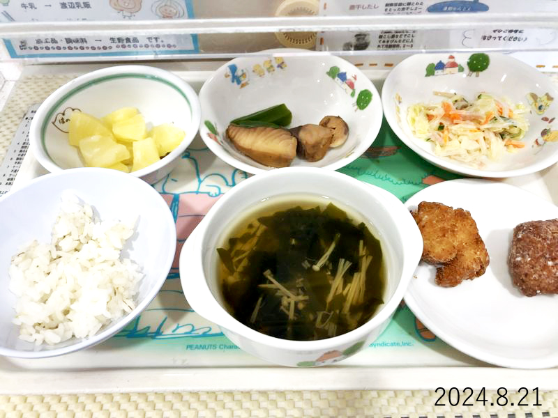 給食 2024-08-21の給食 Posted on 2024-08-21 ■10時のおやつ パイン缶 ■おひるごはん 麦ごはん 清汁 煮魚 春雨サラダ ■3時のおやつ 豆腐ドーナツ いりこ クリックして X で共有 (新しいウィンドウで開きます) X Facebook で共有するにはクリックしてください (新しいウィンドウで開きます) Facebook クリックして Tumblr で共有 (新しいウィンドウで開きます) Tumblr クリックして Pinterest で共有 (新しいウィンドウで開きます) Pinterest