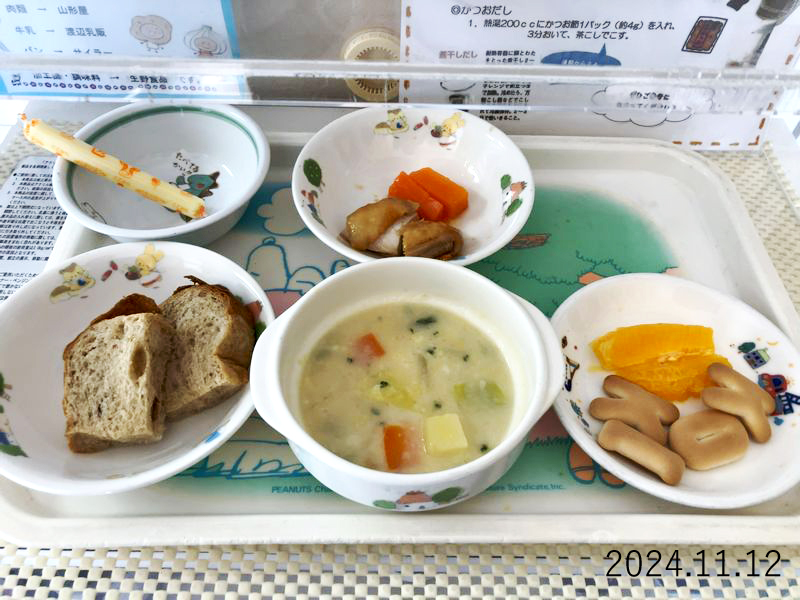 給食 2024-11-12の給食 Posted on 2024-11-12 ■10時のおやつ チーズ ■おひるごはん ぶどうパン 鶏のマーマレード焼き にんじんの甘煮 えびのチャウダー ■3時のおやつ オレンジ クッキー X で共有 (新しいウィンドウで開きます) X Facebook で共有 (新しいウィンドウで開きます) Facebook Tumblr で共有 (新しいウィンドウで開きます) Tumblr Pinterest で共有 (新しいウィンドウで開きます) Pinterest
