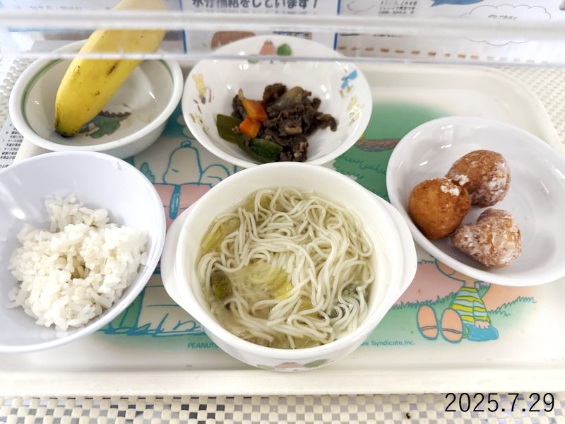 給食 2025-07-29の給食 Posted on 2025-07-29 ■10時のおやつ バナナ ■おひるごはん 麦ごはん 牛肉のつけ焼き そうめんのみそ汁 ■3時のおやつ 豆腐ドーナツ X で共有 (新しいウィンドウで開きます) X Facebook で共有 (新しいウィンドウで開きます) Facebook Tumblr で共有 (新しいウィンドウで開きます) Tumblr Pinterest で共有 (新しいウィンドウで開きます) Pinterest