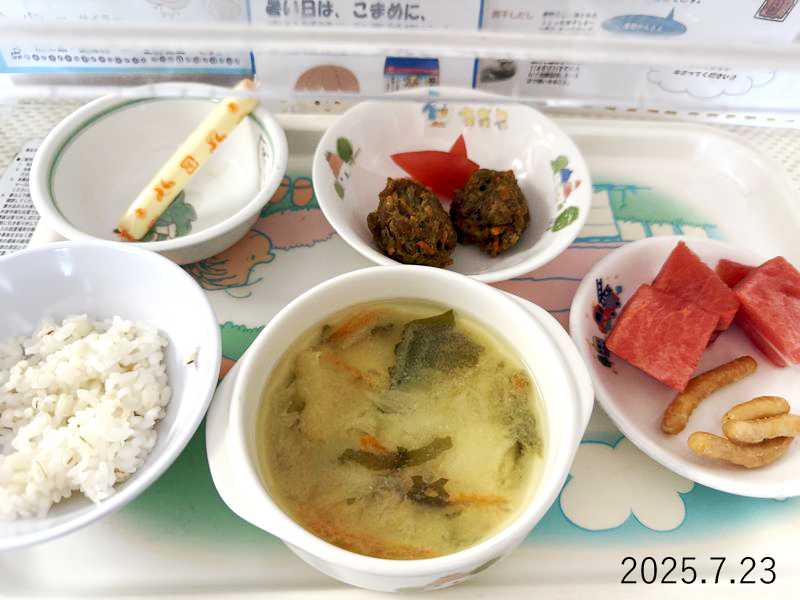 給食 2025-07-23の給食 Posted on 2025-07-23 ■10時のおやつ チーズ ■おひるごはん 麦ごはん 納豆の天ぷら トマト 切り干し大根のみそ汁 ■3時のおやつ すいか かりんとう X で共有 (新しいウィンドウで開きます) X Facebook で共有 (新しいウィンドウで開きます) Facebook Tumblr で共有 (新しいウィンドウで開きます) Tumblr Pinterest で共有 (新しいウィンドウで開きます) Pinterest